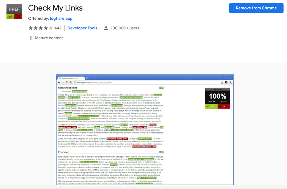 With a simple click of the button, “Check My Links” will crawl through your webpage and automatically identify all broken links that you might have missed.
