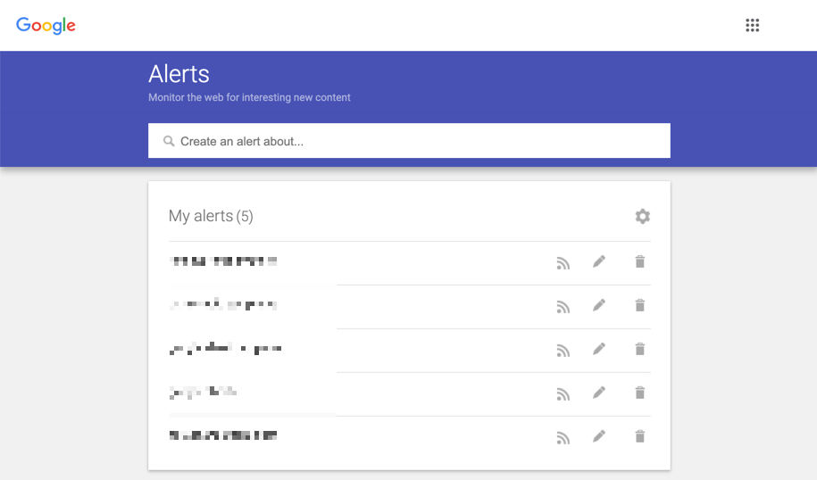 Get an automated up to date list of everything even mentioned anywhere on the web that has your selected keywords in it; every day, every hour, no matter when you created the alert.