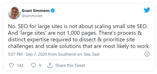 Enterprise SEO prioritizes different challenges and needs to identify and scale solutions that are most likely to work, as Grant Simmons of Homes.com points out: