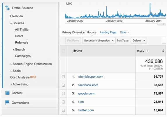 When you view your Referrals under Traffic Sources in Google Analytics, you can see the main domains from which traffic to your website originated.