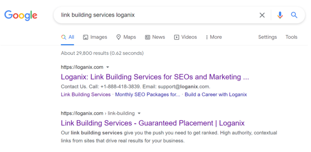 At Loganix, we offer various content marketing services, one of which is link building. So, when someone types ‘link building services’ or ‘Loganix’ into Google, we want Google to know they are looking for us and show us in the SERPs or search engine results pages.