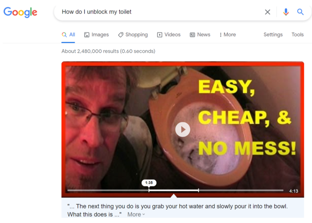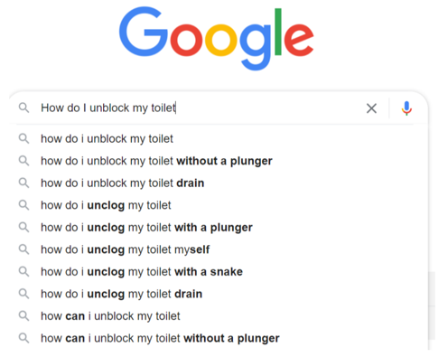 Going back to our plumbing business example, if you type a question relevant to your business into Google, Google will also show you other search queries people ask that are similar to that question.