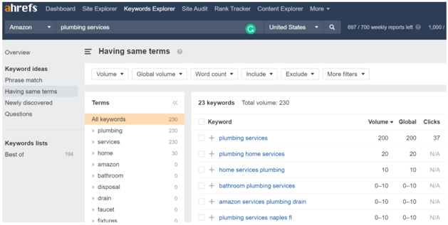 The keyword explorer in these services reveals similar keywords to your root word and shows how many people are looking for that term in a month (search volume). Advanced SEO content strategists then use this information to determine what type of content you need to write and which keywords to target to maximize the chances of search engines users finding your website.
