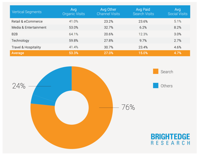As this graph from BrightEdge research demonstrates, around 76% of website users land on that website by searching for the business or keywords on a search engine first.